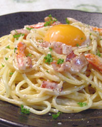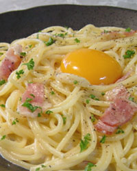 ※本場のカルボナーラは、ベーコンのかわりにパンチェッタ(塩味の強い生ベーコン)を使います。 | |