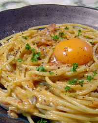 ベーコンをフライパンで、バター10gで揚げるように焼く。