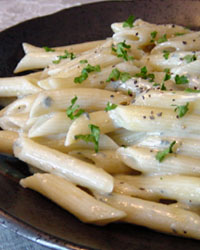 ※ソースと絡みやすい、ペンネやファルファーラを使用する場合は、