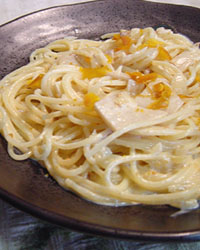生クリーム、固形スープを溶かした牛乳をいれ火を加える。