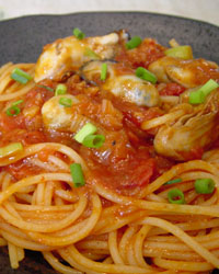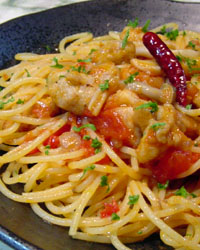 オリーブオイル20ccで唐辛子とニンニクをいためる。
