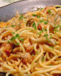 白ワイン加えて強火でアルコール分をとばし、風味をつける。