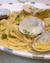 パセリ、アサリを汁ごといれて軽く火をとおす。