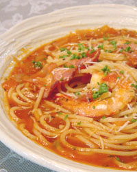 ゆでたスパゲッティーをからめて深皿に盛り、