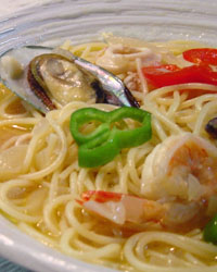 オリーブオイル20ccでニンニクと唐辛子をとろ火でいためる。