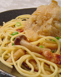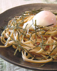 味付けナメタケと醤油をまぜたダイコンおろしを中央にのせ、