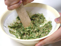 ほうれん草、ジェノベーゼ、バター10gを加え、