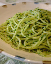 ゆでたスパゲッティをからめて皿にもる。