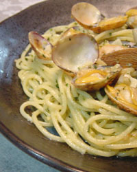 塩で味を調え、ゆでたスパゲッティをからめて皿にもる。