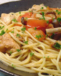 オリーブオイル20ccでニンニクをとろ火でいためる。