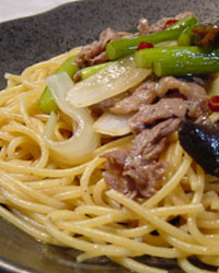 ゆでたスパゲッティをからめてもりつける。